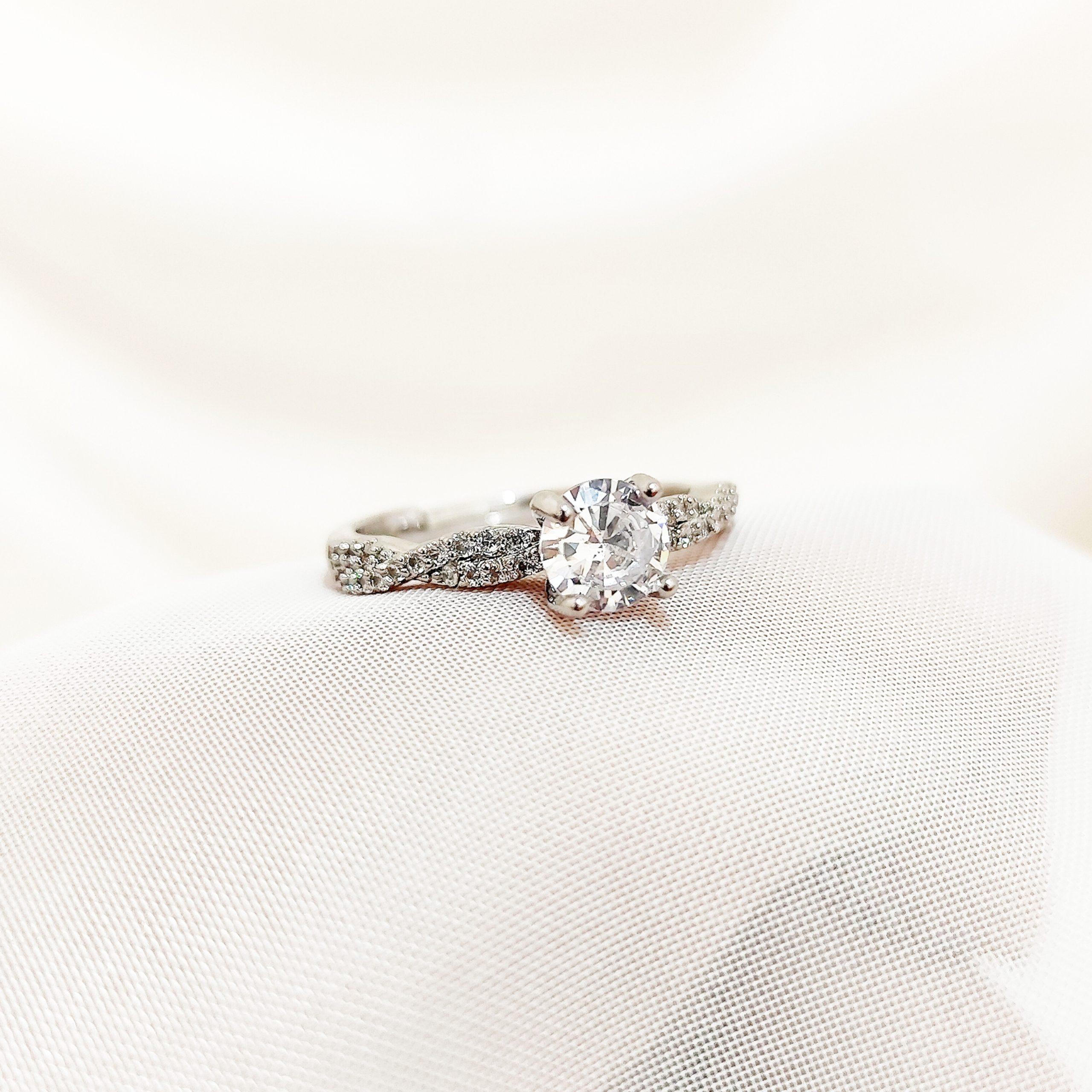 انگشتر جواهری نگین سفید گرد