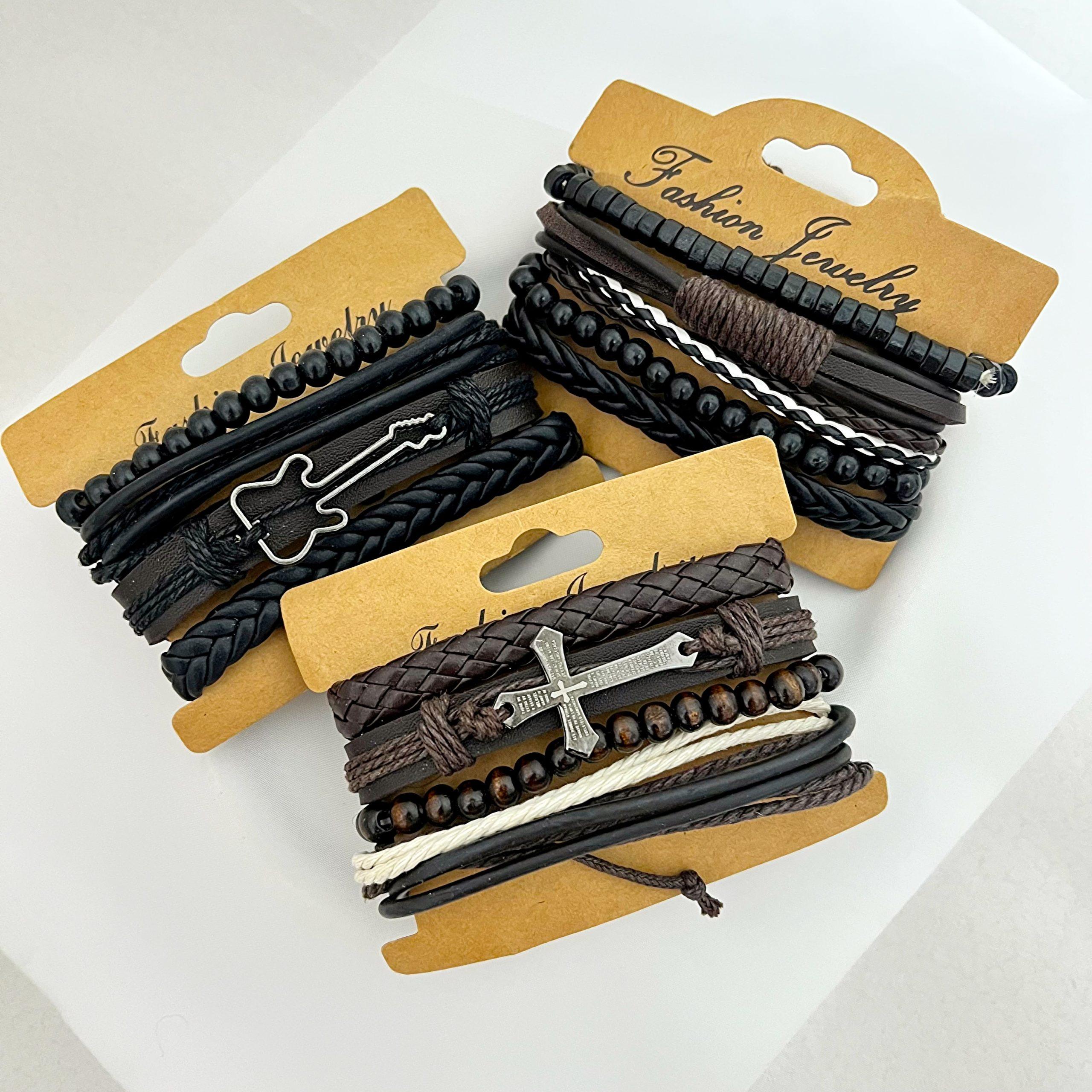 دستبند چرمی مردانه پک چهار عددی