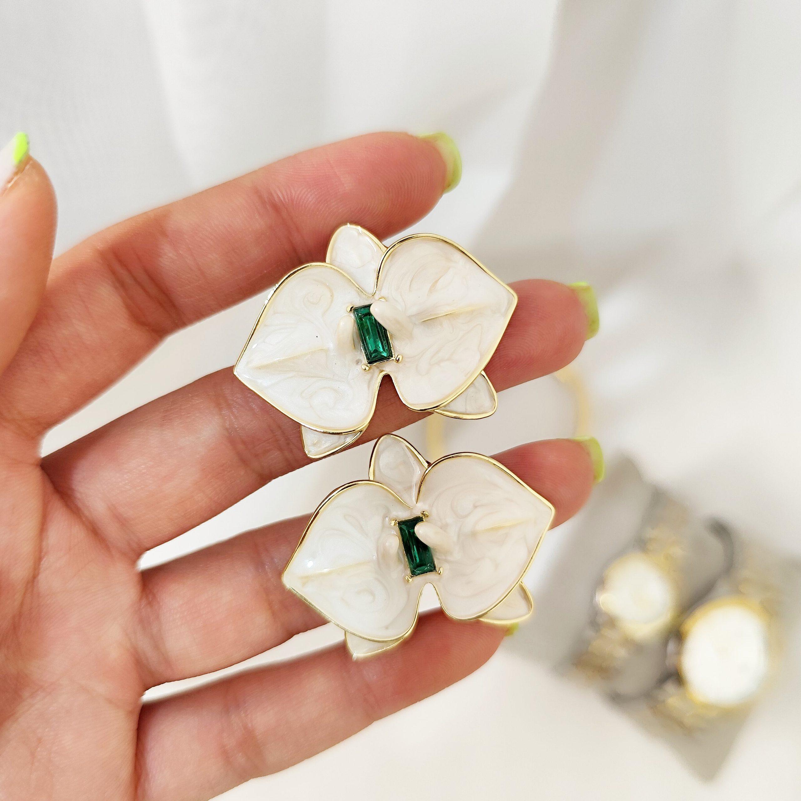 گوشواره میناکاری مدل گل و مروارید | 1904