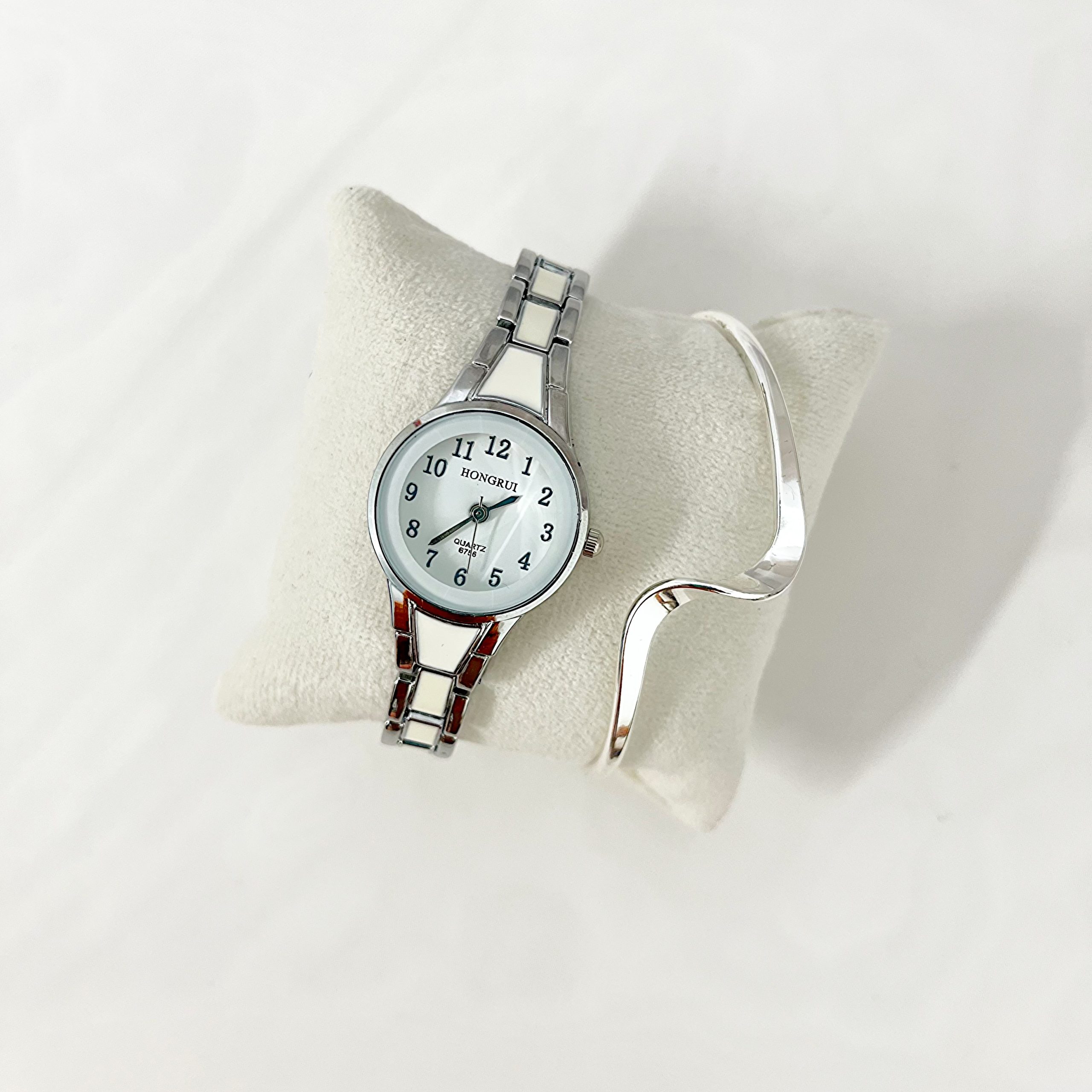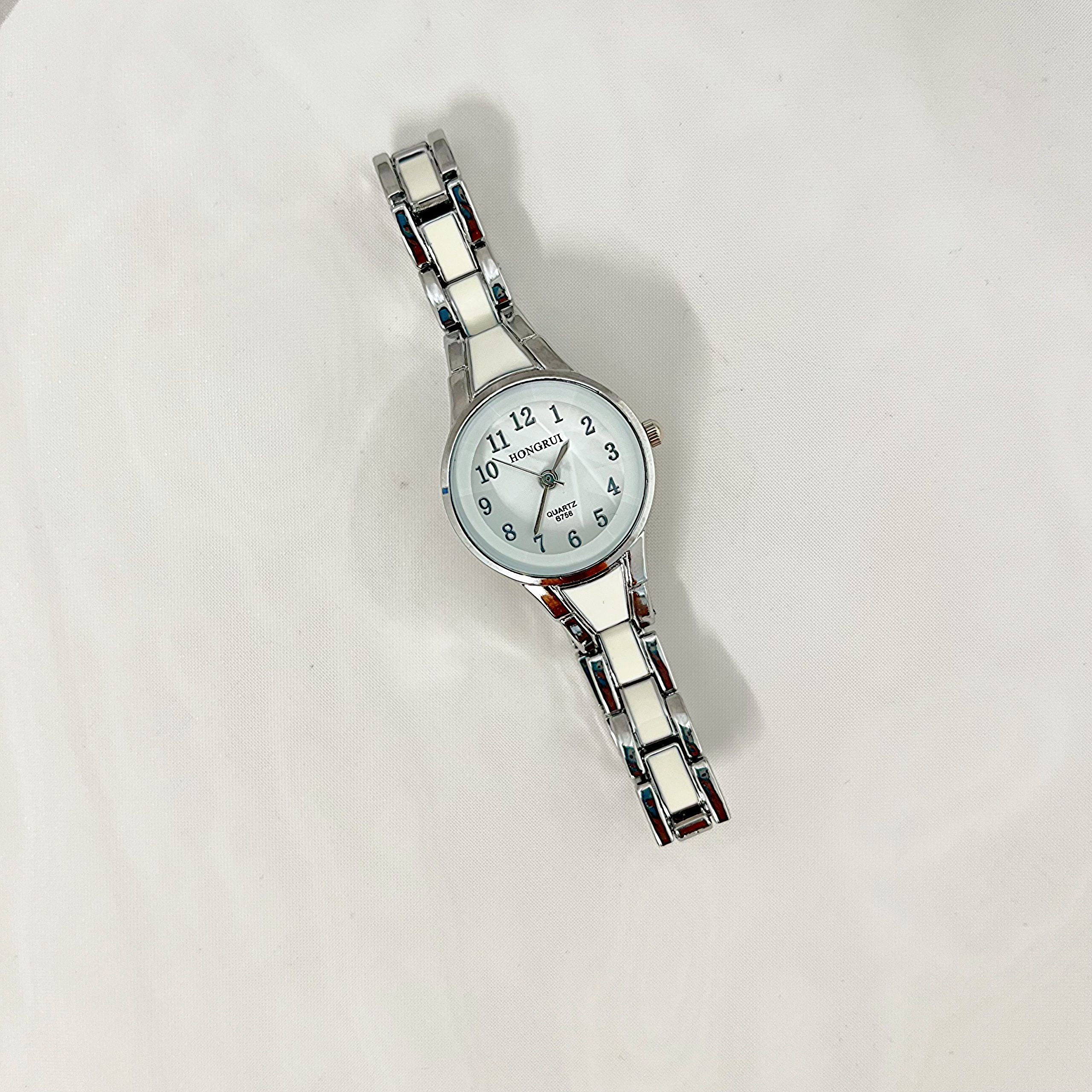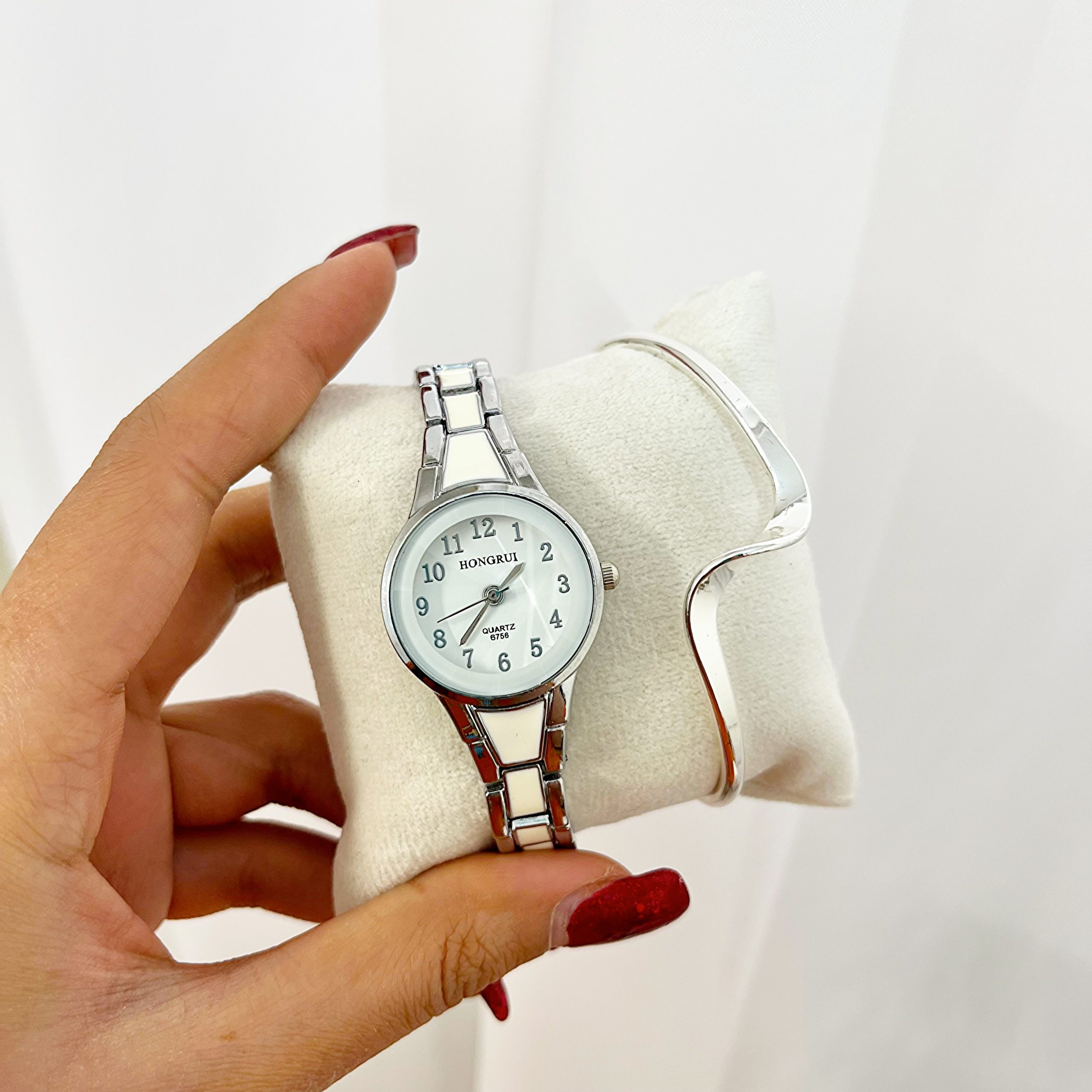 دستبند نگینی تنیسی ,بنگل موج سیلور ,ساعت سیلور صفحه سفید |